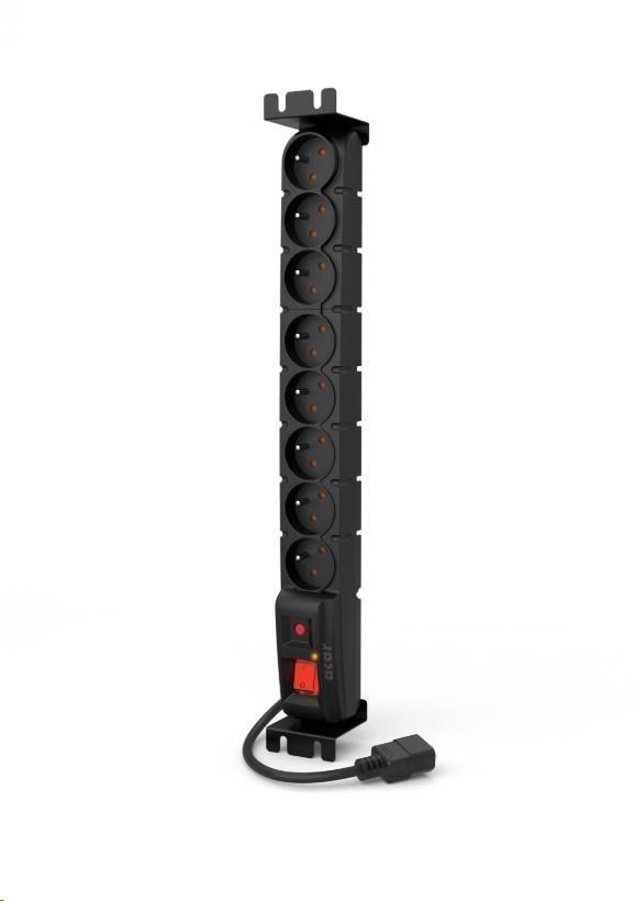 19" rozvodný panel ACAR 8x230V s IEC konektorem pro UPS, vypínač, indikátor napětí, přepěťová ochrana, kabel 5m