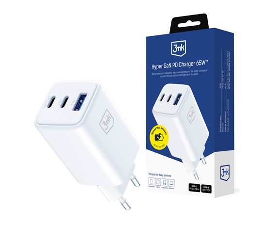 3mk síťová nabíječka Hyper GaN Charger 65W, bílá