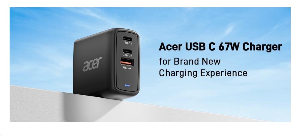 ACER Adapter 67W PD GaN charger,USB-C,USB-A,EU plug,Black New arrival Your price: the product is no longer available Price information Your price excl. SNC: - Retail price: - SNC: - AO: - Your price inc. sales tax: - Show all prices Product information Code: 11295389 P/N: ZL.ADTCC.00J Warranty: 12 Month(s) Manufacturer: Acer Representative in the EU: EAN: 4711721041420 Parameters Commodity Logistics information Warranty service Technical parameters Accessory type: AC Adapters (220V)