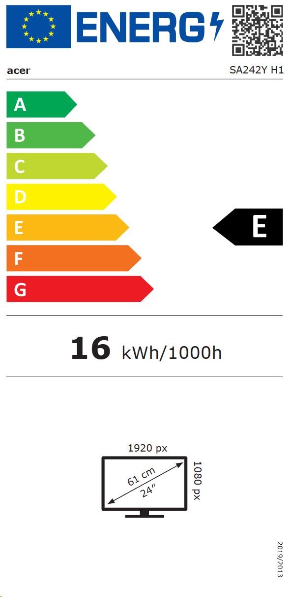 ACER LCD SA242YH1bi,23.8" VA LED,FHD,100Hz,250nits,4ms,VGA,HDMI,VESA,Black