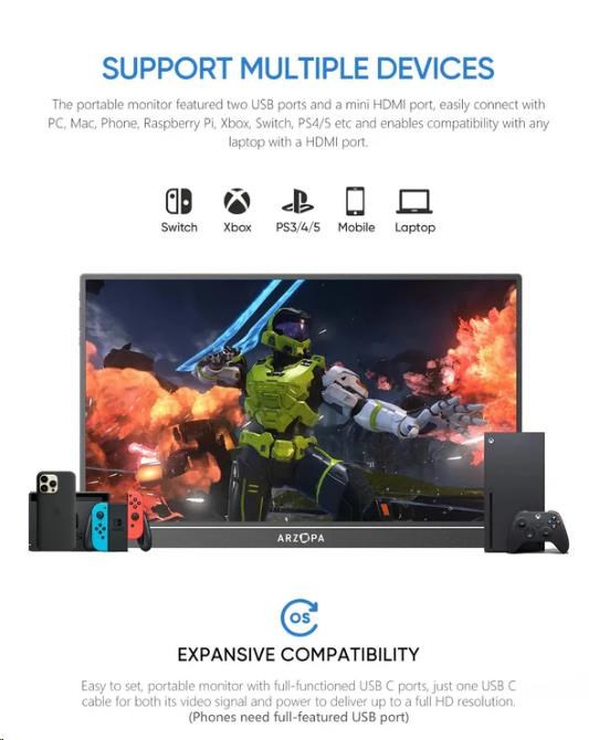 Arzopa Z1RC Portable Monitor 16" IPS QHD 2.5K Metal Housing Přenosný monitor
