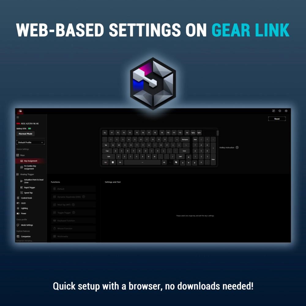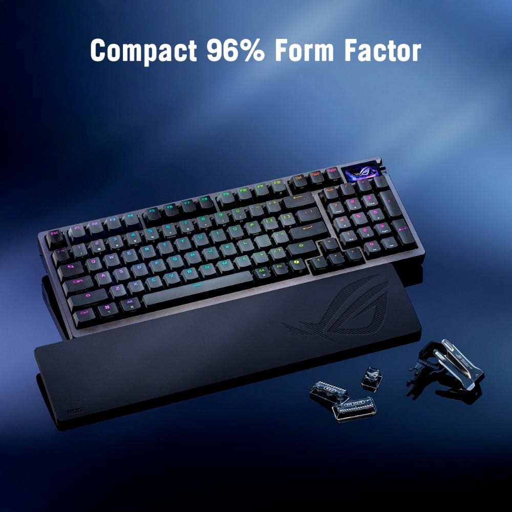 ASUS klávesnice ROG Azoth 96 HE, Mechanická, Bezdrátová, BT, RF 2.4GHz, US, černá