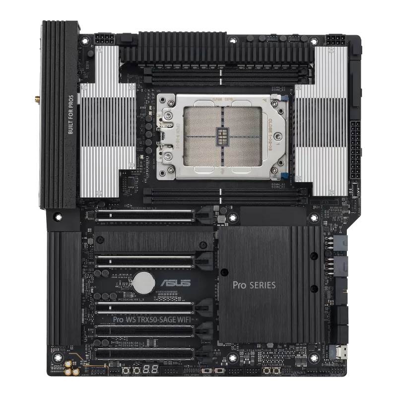 AMD TRX50 CEB workstation motherboard, CPU and memory overclocking ready, robust 36 power-stage design, PCIe 5.0 x 16, PCIe 5.0 M.2, 10 Gb and 2.5 Gb LAN, multi-GPU support