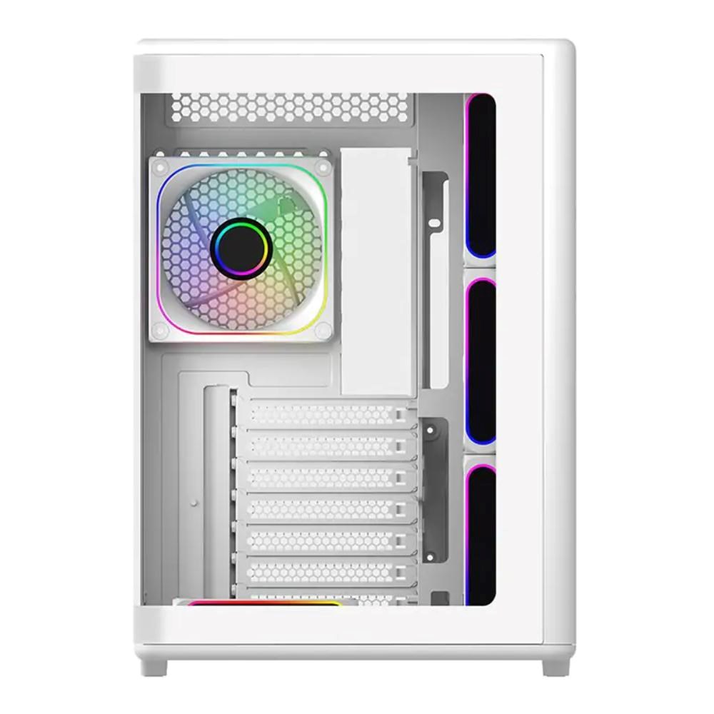 Case:Midi Tower; Case colour:Whitte; Number of slots 3.25" (HDD):2; Number of slots 2.5":2; PC Case equipment:Front Audio Panel, Front USB Panel, Transparent Sidewall