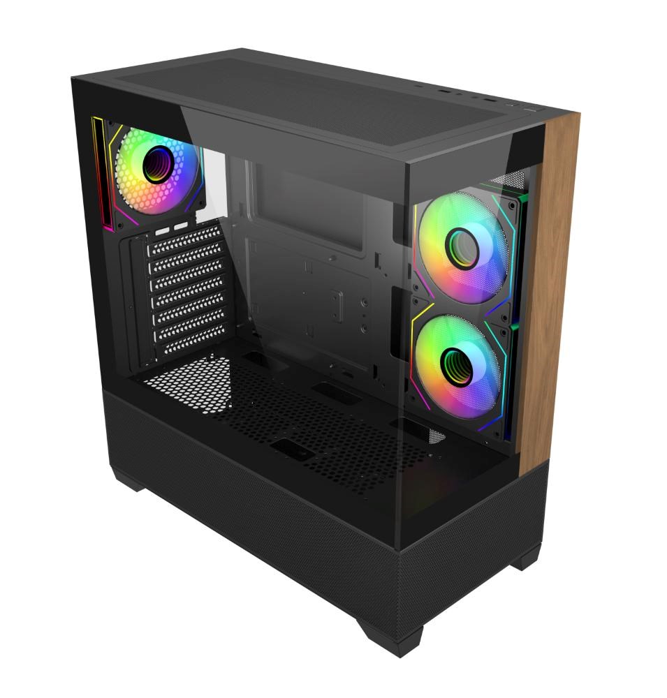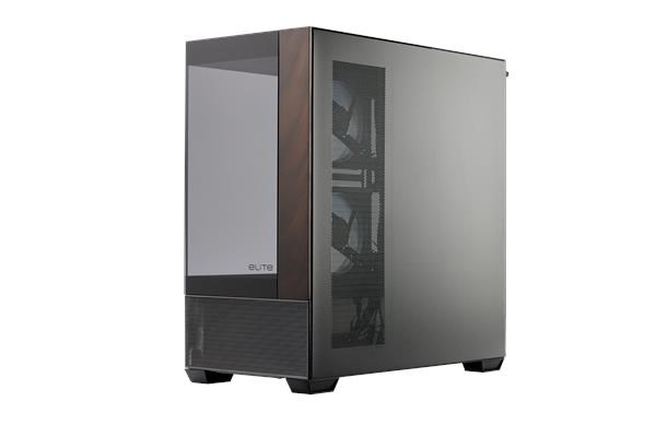 BAZAR - Cooler Master case Elite 690 Wood, ATX, Průhledná bočnice, 3x 120mm ARGB Fan, Černá - Poškozený obal (Komplet)