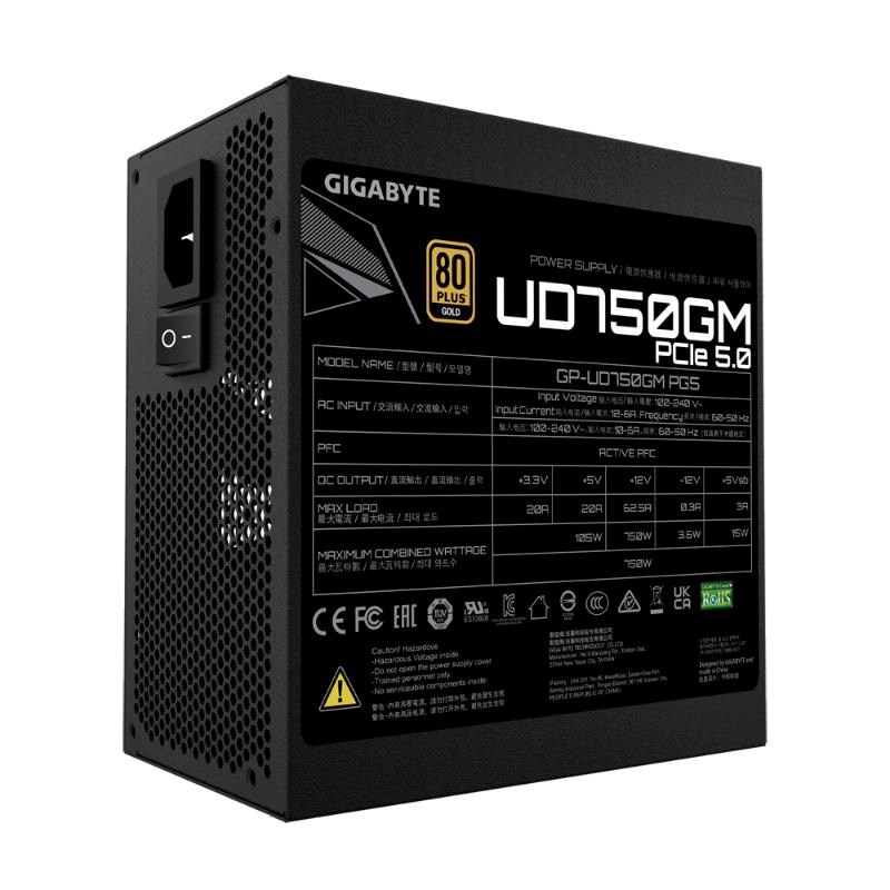 BAZAR - GIGABYTE zdroj UD750GM PG5, 750W, 80+ Gold, 120mm fan - Po opravě (Komplet)