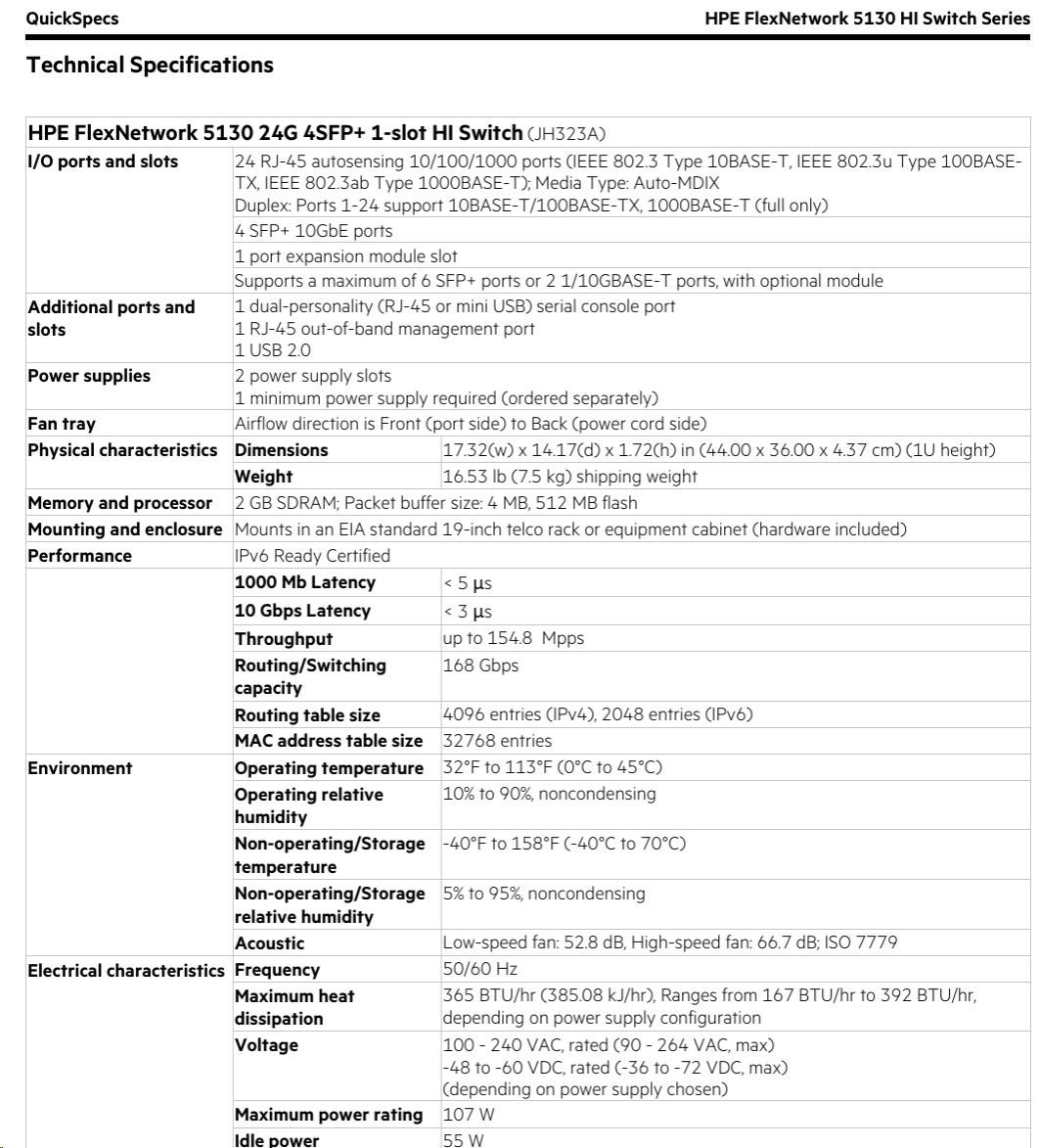 Software and support: HPE Networking SupportEnvironmental Specification