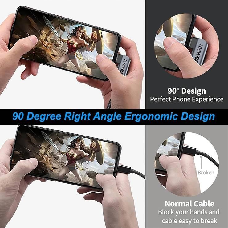 BAZAR - PremiumCord USB-C 2x zahnutý kabel (USB 3.2 GEN 2x2, 5A,100W, 20Gbit/s)bavlněný oplet, délka:0,5m Náhradní obal