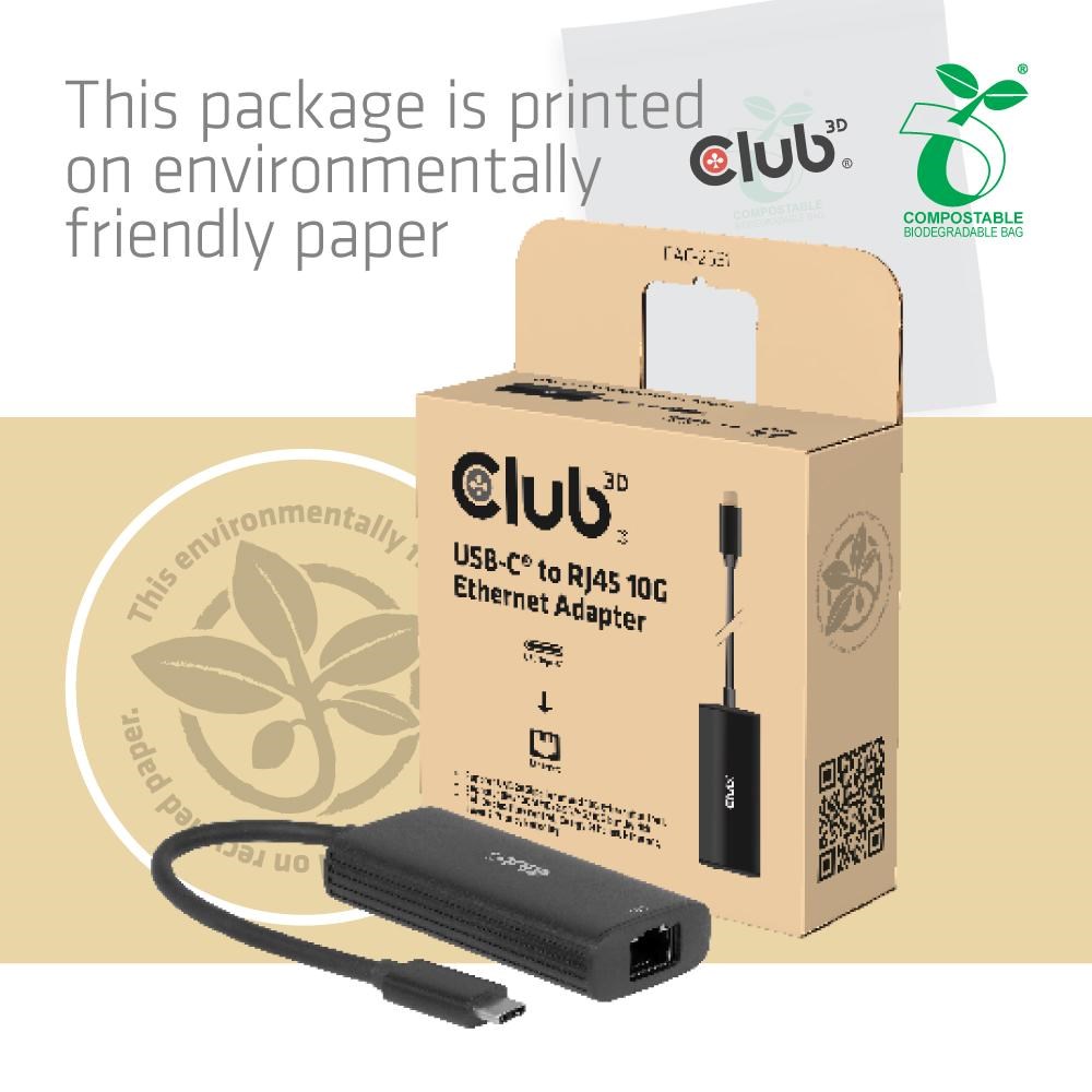 Club3D Adaptér USB-C na RJ45, 10Gb, M/F, 12cm