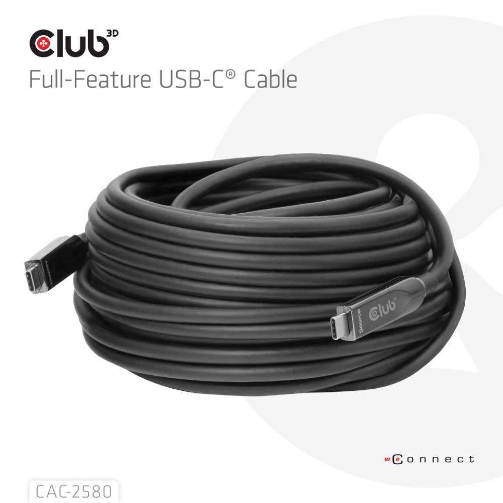Club3D Kabel USB-C, 10 Gbps, 4K120Hz, 8K60Hz, 60W, Bi-directional, 15m, černá