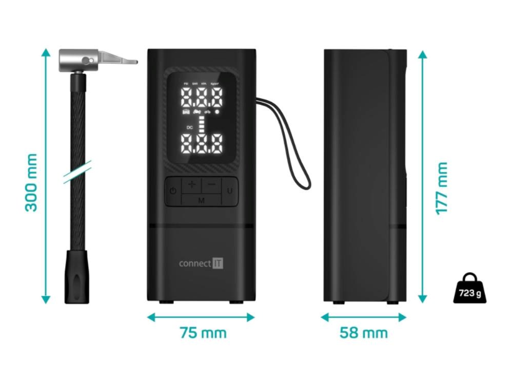 CONNECT IT Přenosný kompresor a powerbanka AirFlow 2v1, 6000mAh, USB-C, Černá