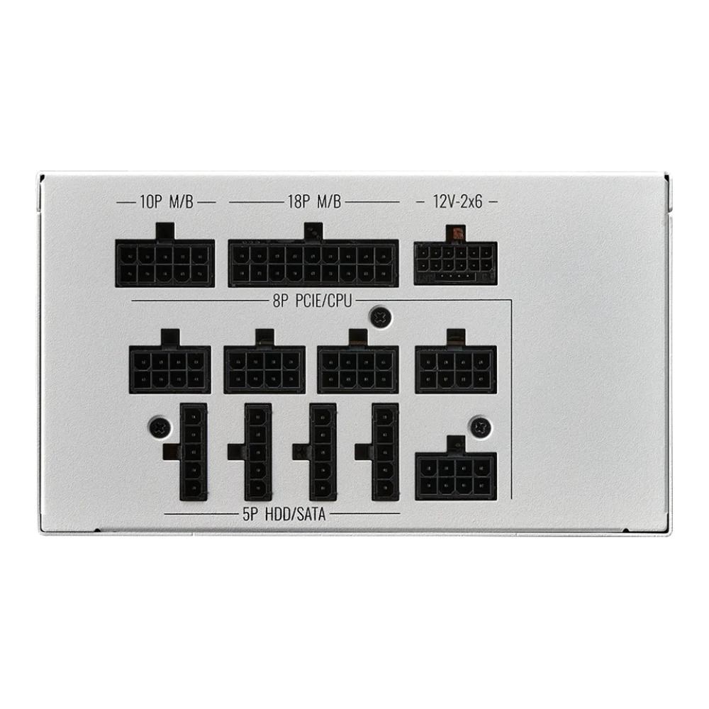 PSU format:ATX; Connectors:8pin CPU 1x, PCIe 6-pin, PCIe 8-pin, PCIe 16-pin Gen5, SATA 15-pin, Molex; Motherboard connectors:ATX 20-pin, ATX 24-pin, EPS 8-pin; PSU properties:Modular cabling