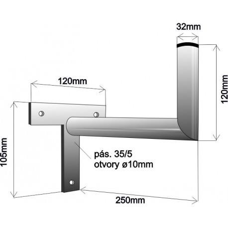 Držák antény na zeď, tvar T mini, galvanický zinek, délka 25cm