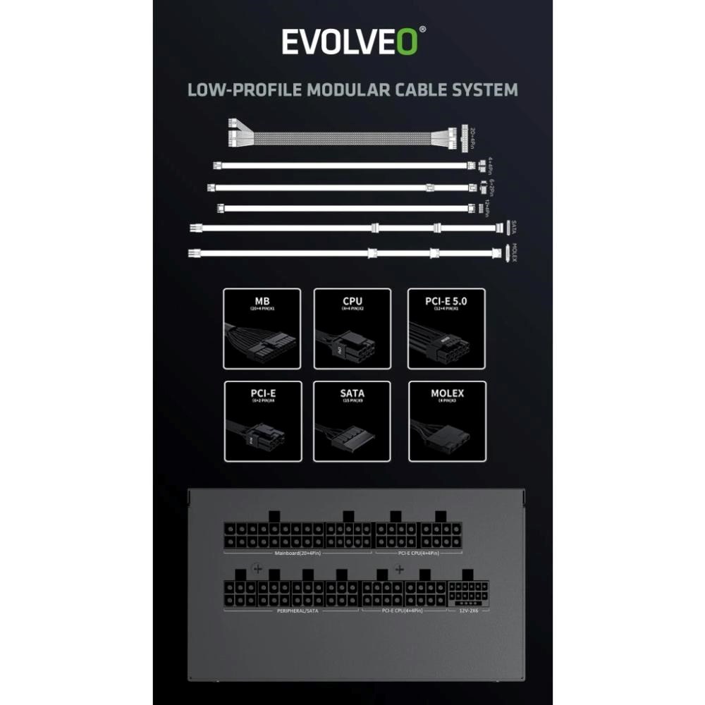EVOLVEO G850 zdroj 850W, 80+ GOLD, ATX 3.1, aPFC, 140 mm ventilátor