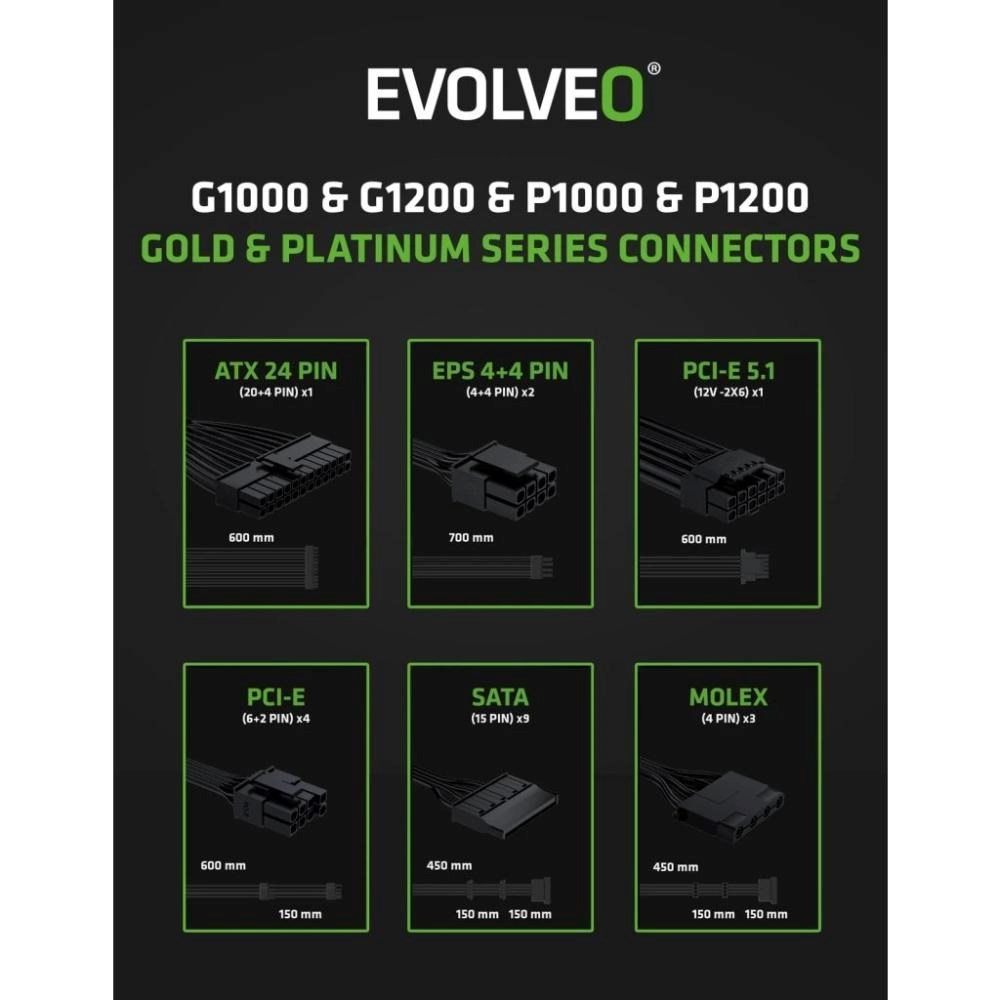 EVOLVEO P1200 zdroj 1200W, 80+ PLATINUM, ATX 3.1, aPFC, 140 mm ventilátor, 3 roky záruka, černý