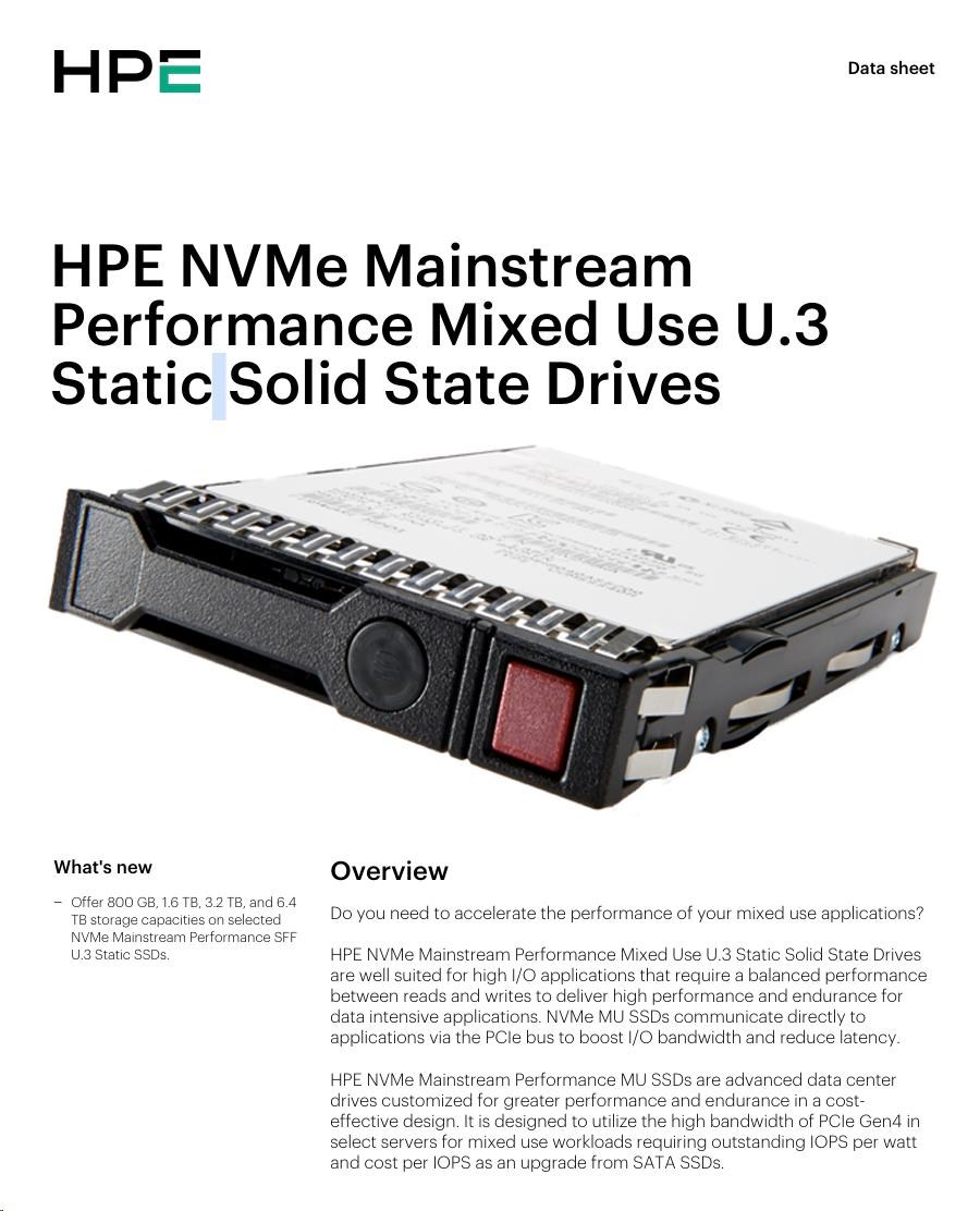 HPE 3.2TB NVMe Gen4 Mainstream Performance Mixed Use SFF BC U.3 Static V2 Multi Vendor P65015-B21 RENEW