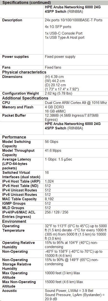 Specification | 6000 24G 4SFP Switch (R8N88A) |