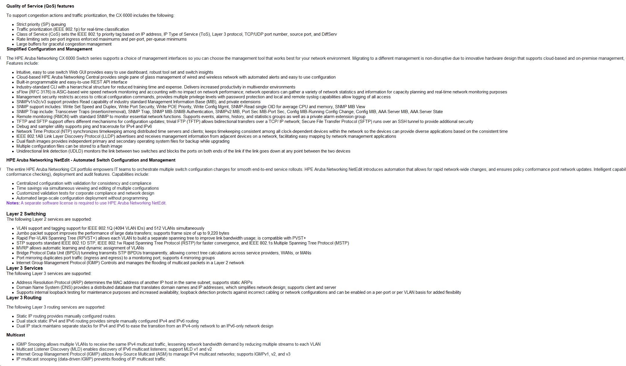 HPE Aruba Networking CX 6000 48G 4SFP Switch