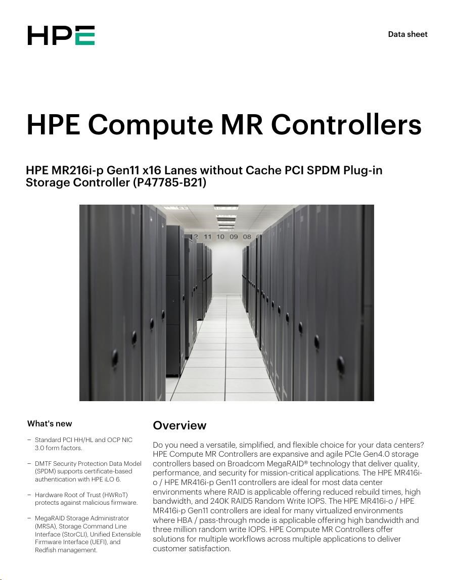 HPE MR216i-p Gen11 16 Internal Lanes/No Cache SPDM PCI Plug-in Storage Controller (raid 0,1,10 only)