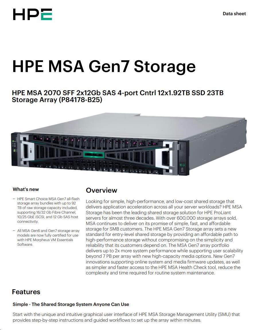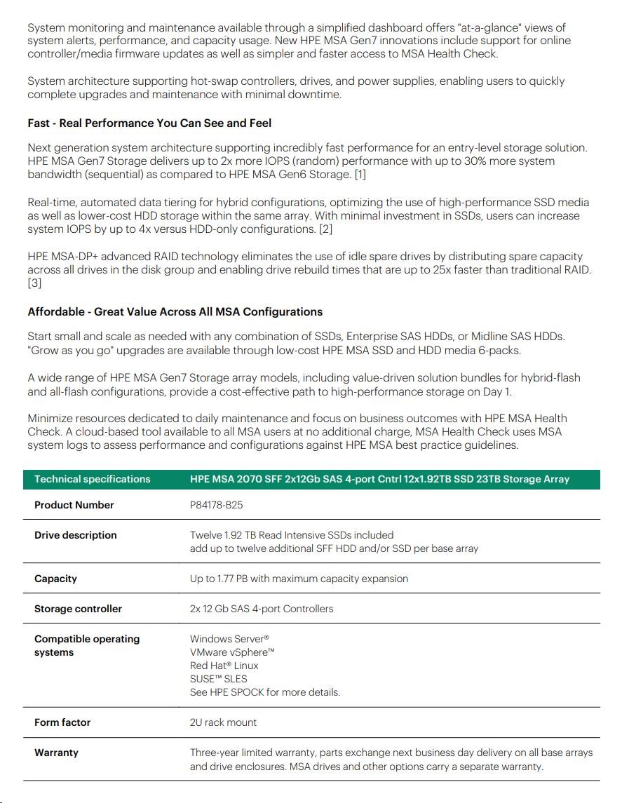 HPE MSA 2070 SFF 2x12Gb SAS 4p Array