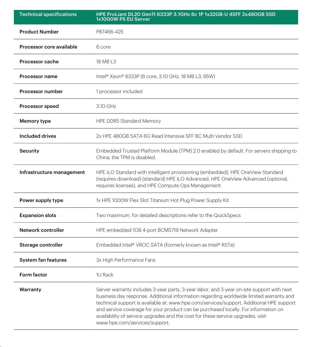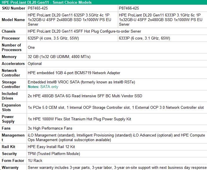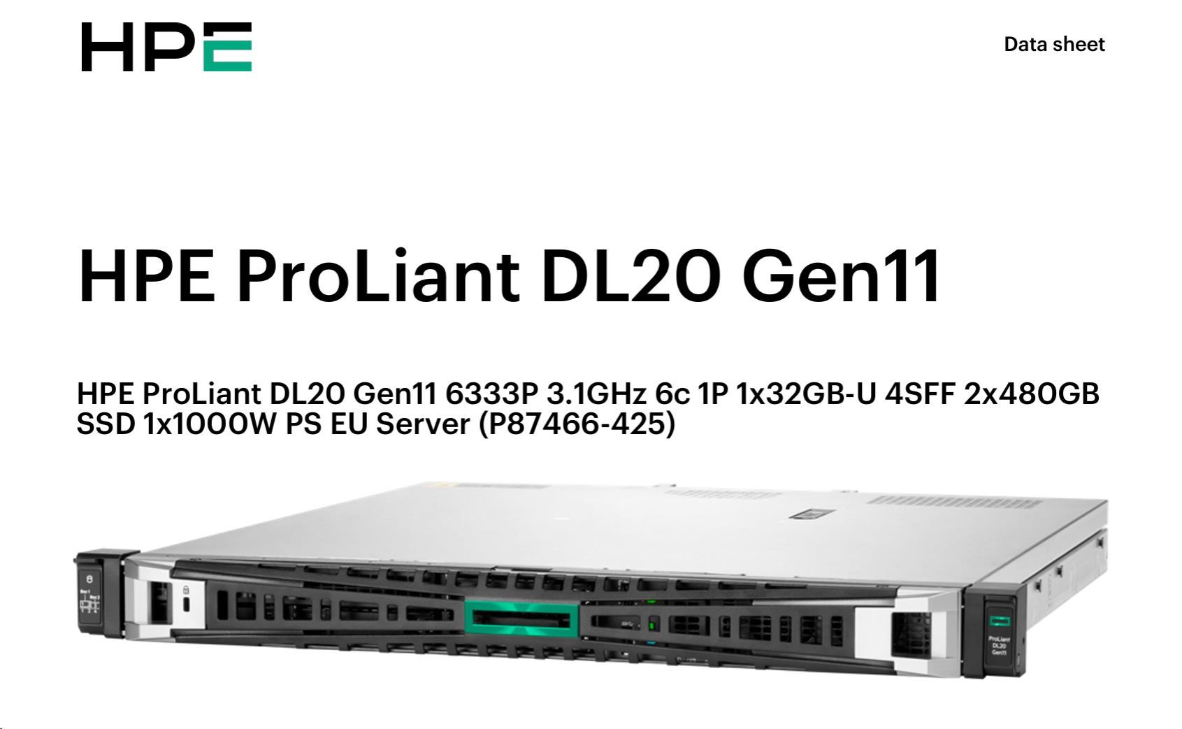 HPE PL DL20 gen11 6333P (3.1G/6C12T) 1x32G 4SFF 2x480GB VROC 1x1000W 4x1G NBD333 Smart Choice