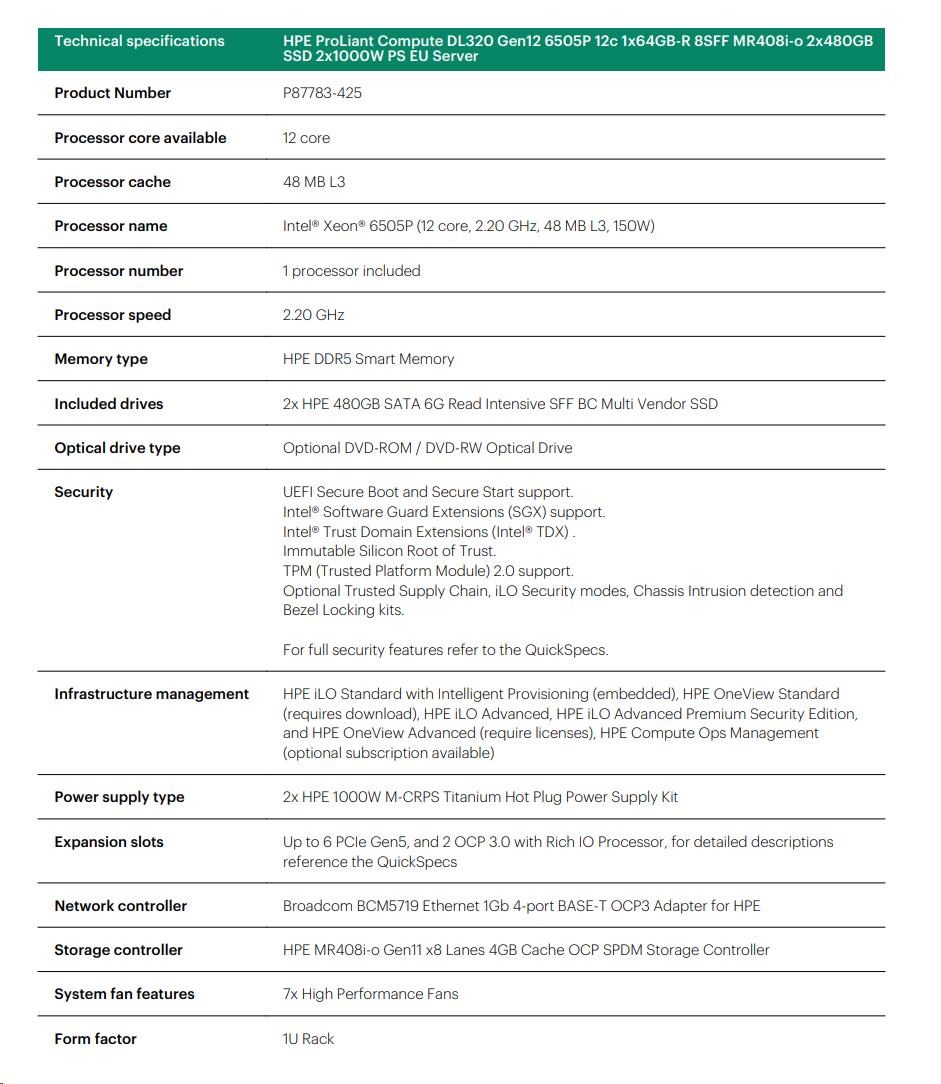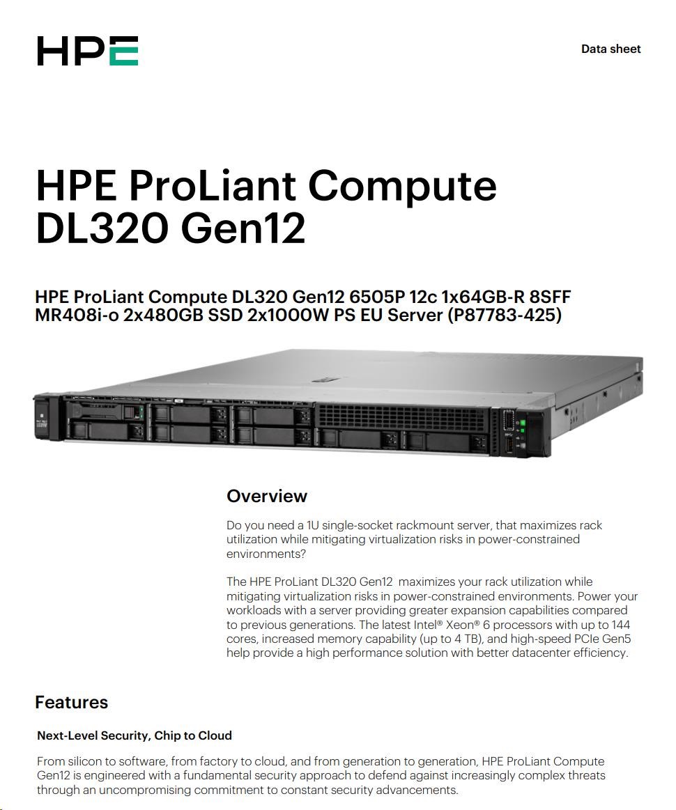 HPE PL DL320g12 6505P (2.2/12C) 4x32G (P69727) MR408i-o 8SFF 2x1000W NBD333 Smart Choice
