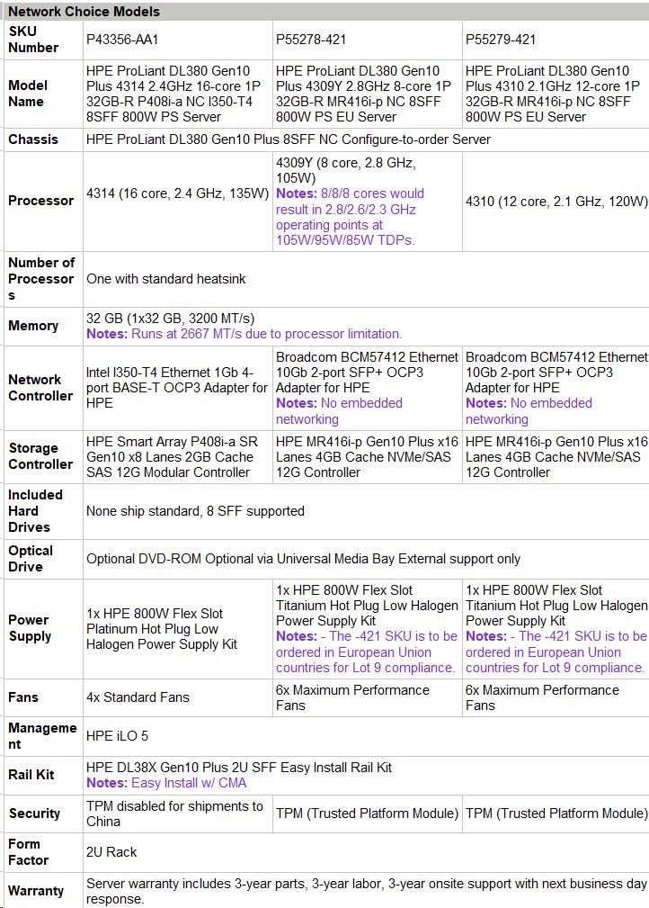 Broadcom BCM57412 Ethernet 10Gb 2-port SFP+ OCP3 Adapter for HPE Notes: No embedded networking |