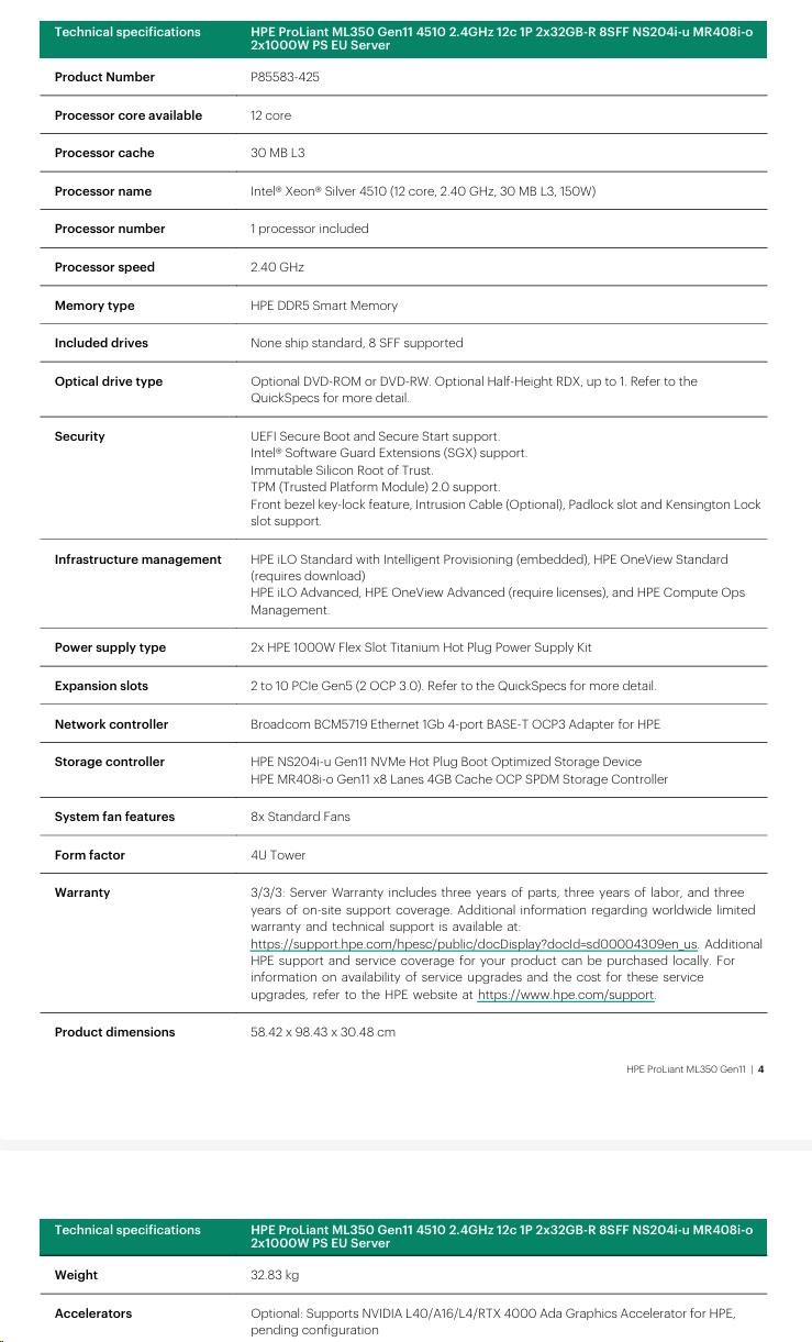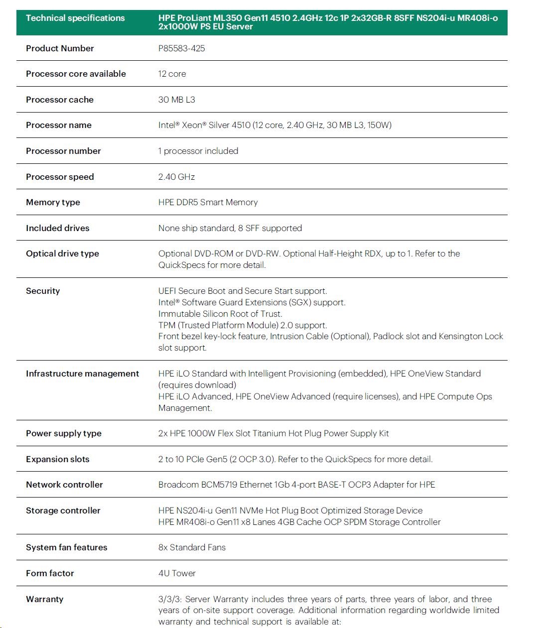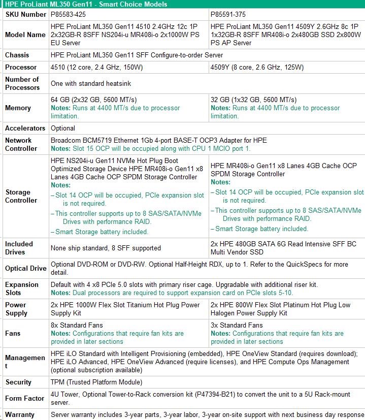 HPE PL ML350g11 4510 (2.4G/12C) 2x32G (P64706) NS204(2x480) MR408i-o 2x1000W 8SFF 4p1Gb Smart Choice