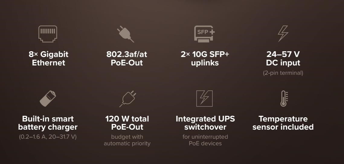 MikroTik CSS610-8P-2S+OUT Venkovní PoE switch s UPS netPower Lite 8P