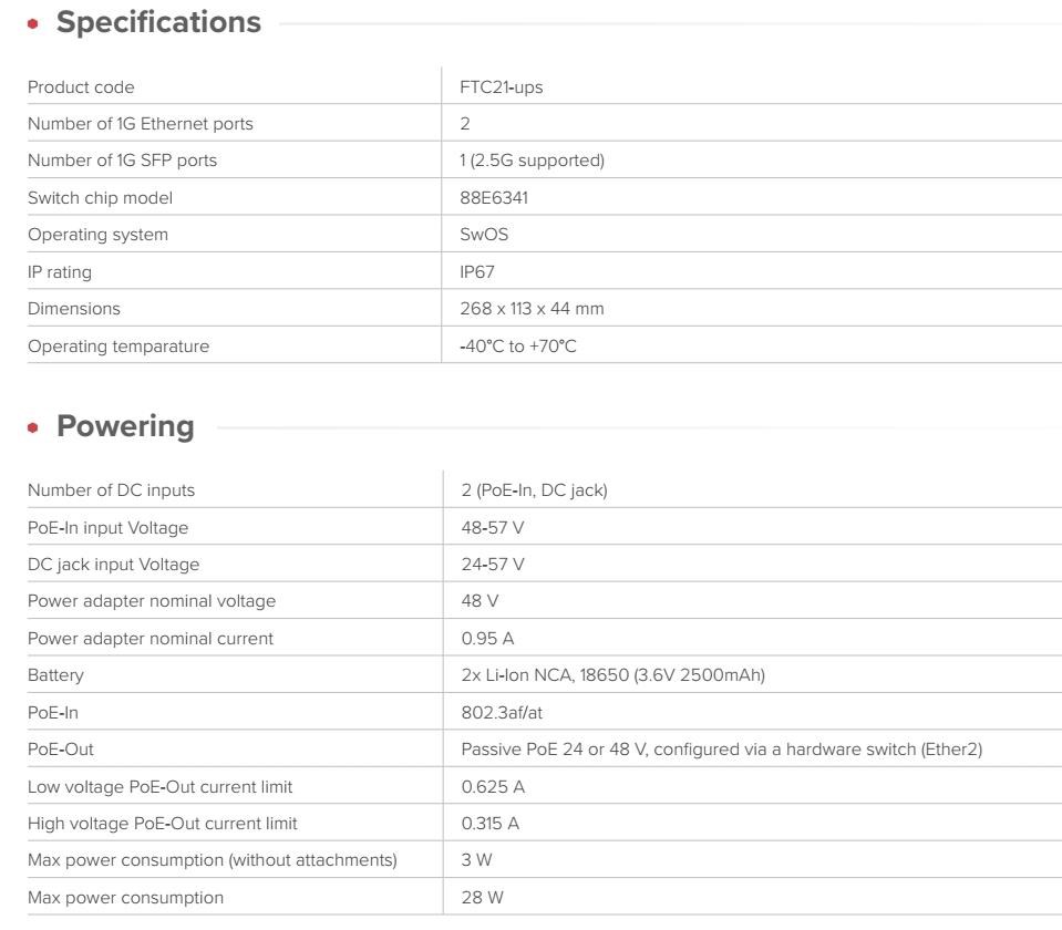 MikroTik FTC21-ups Venkovní inteligentní média konvertor Optika/Metalika s UPS funkcí