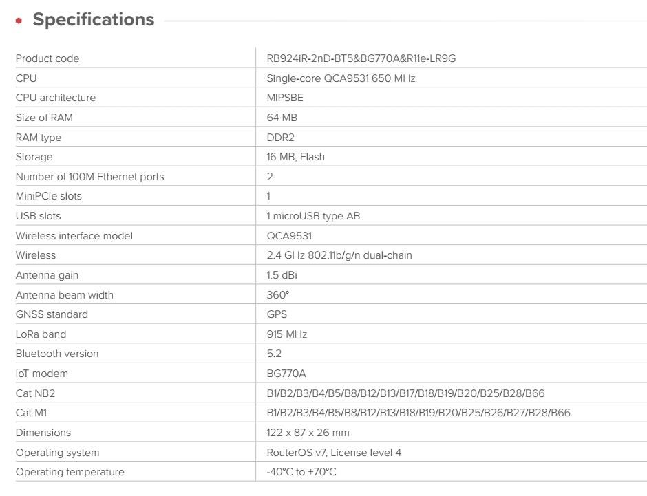 MikroTik RB924iR-2nD-BT5&BG770A&R11e-LR9G IoT Gateway KNOT LR9G kit