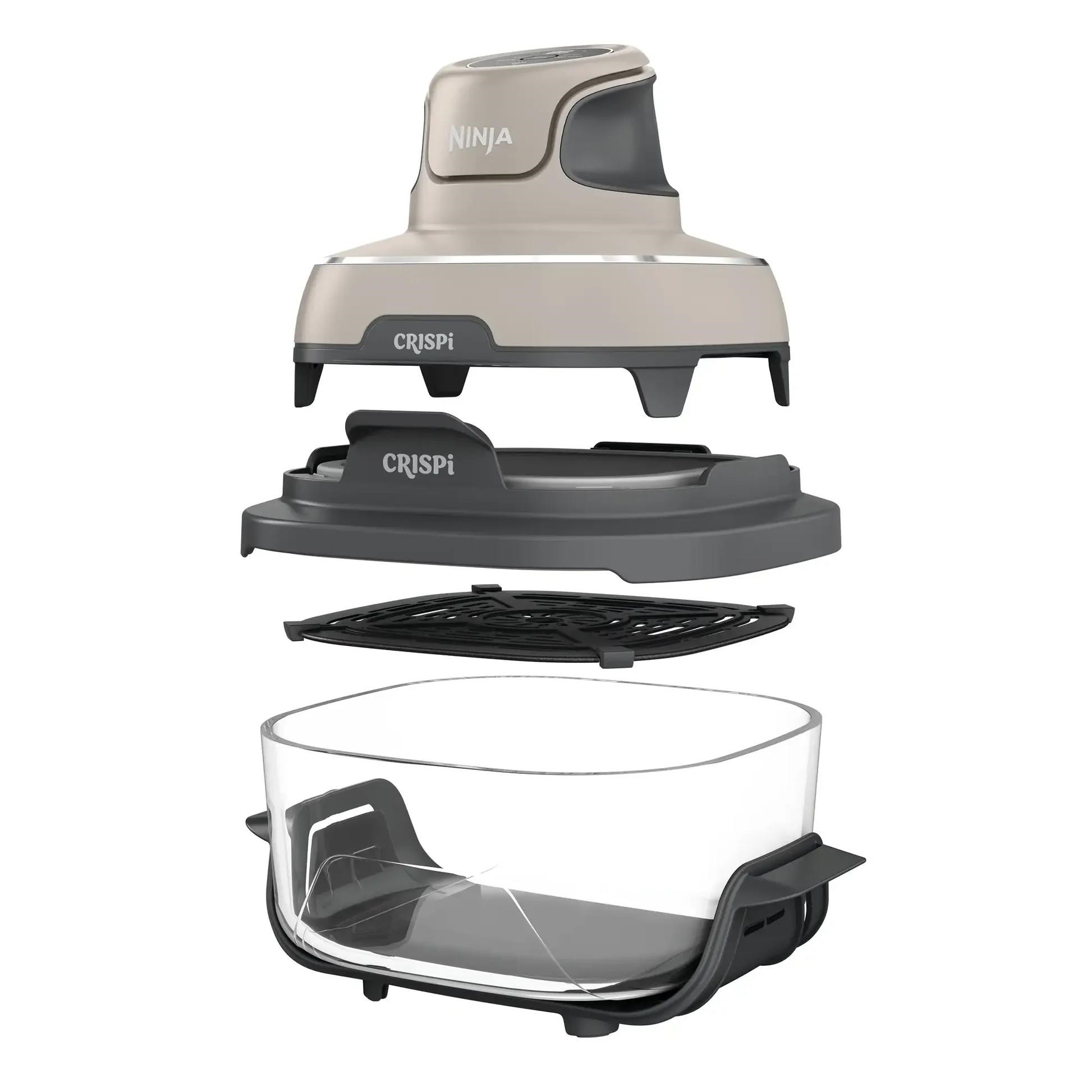 Ninja FN101EUST Crispi, přenosná horkovzdušná fritéza, 4v1, šedá, příkon 1700 W, skleněné nádoby 1,4 l a 3,8 l, bez PFAS