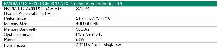 NVIDIA RTX A400 4GB PCIe ATX Bracket Accelerator for HPE