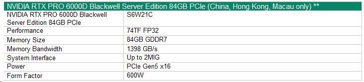 NVIDIA RTX PRO 6000D 84GB PCIe Accelerator for HPE
