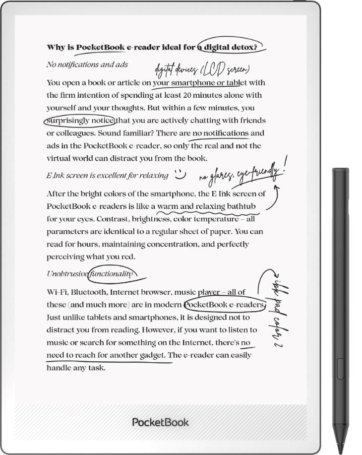 Display type:E-Ink; Display resolution (width x heigth):1404x1872; Memory capacity:32 GB; Reader equipment:Wi-Fi, BlueTooth, Memory card slot