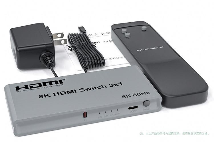 PremiumCord 8K@60Hz, 4K@144Hz HDMI switch 3:1 s dálkovým ovladačem