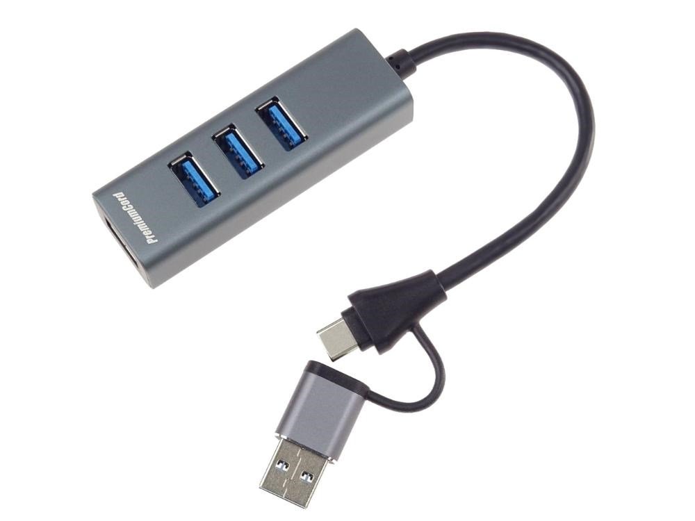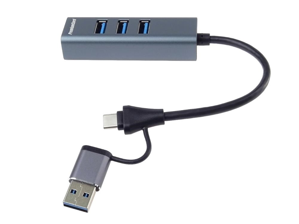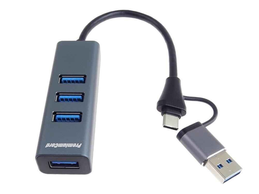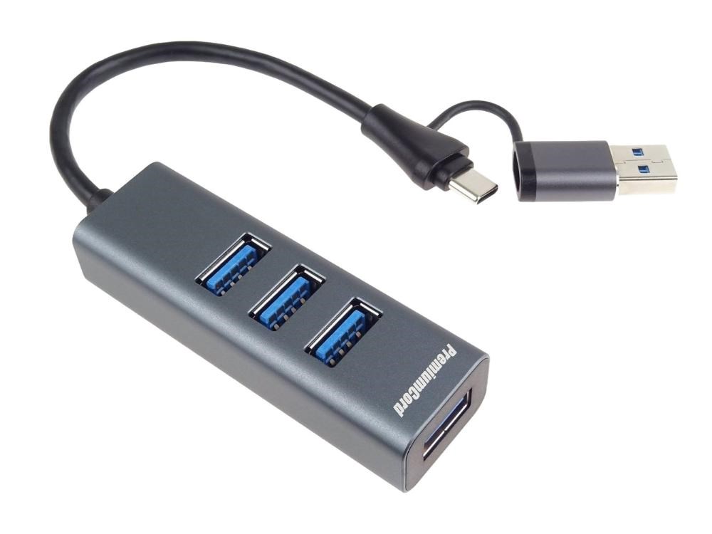PremiumCord Hub 5G SuperSpeed, USB-C a USB-A na 4x USB-A 3.2 Gen 1