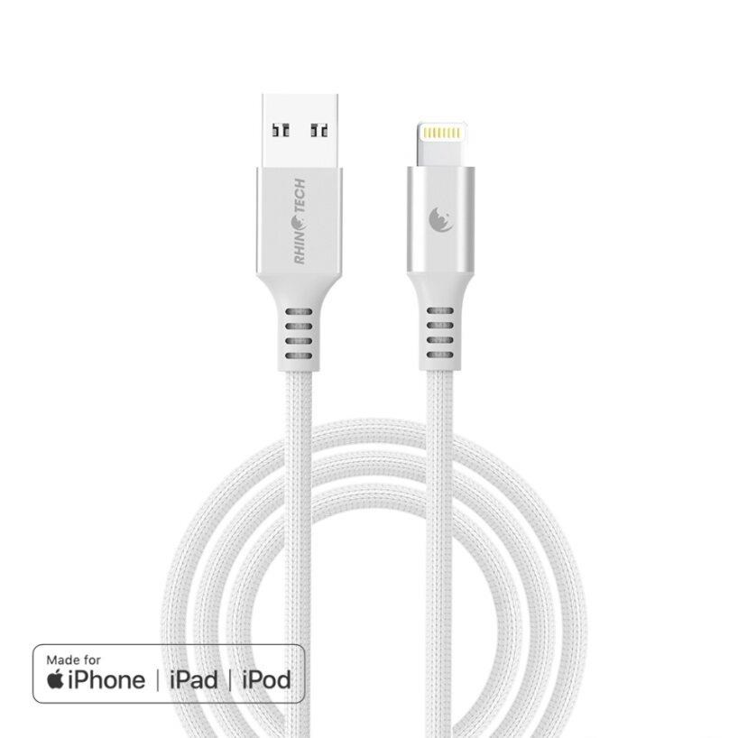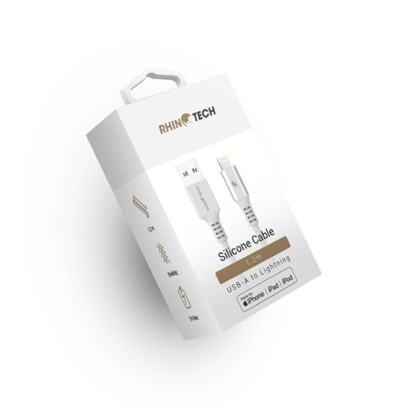 RhinoTech LITE MFi kabel s nylonovým opletem USB-A na Lightning 1.2m stříbrná