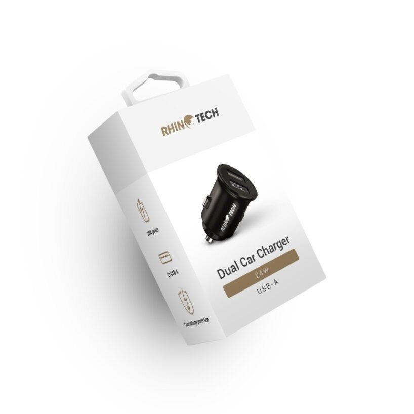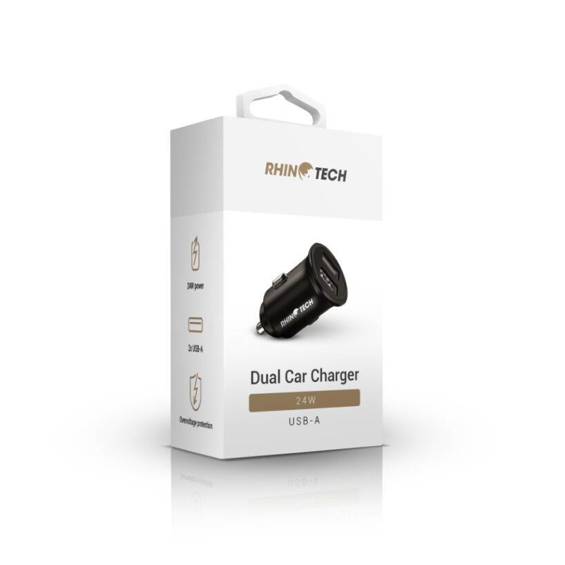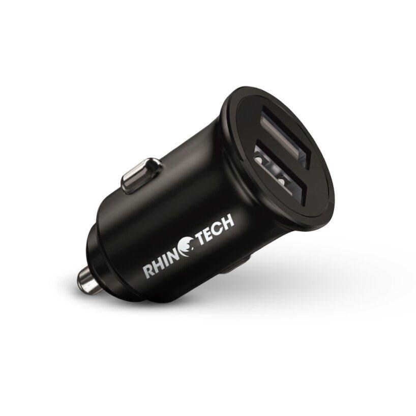 RhinoTech LITE MINI kovový duální USB-A nabíjecí adaptér do auta 24W černá
