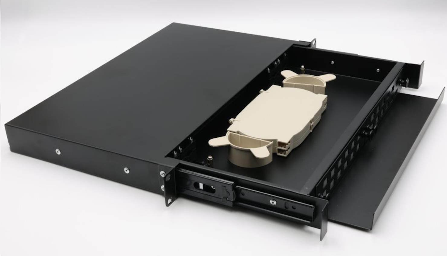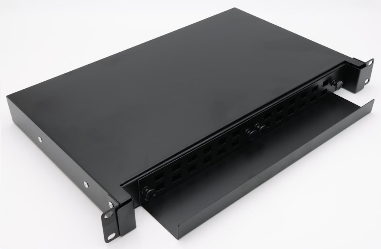 Rozvaděč, 19", optický, 1U, 24× SC simlex nebo 24× LC duplex, výsuvný, černý