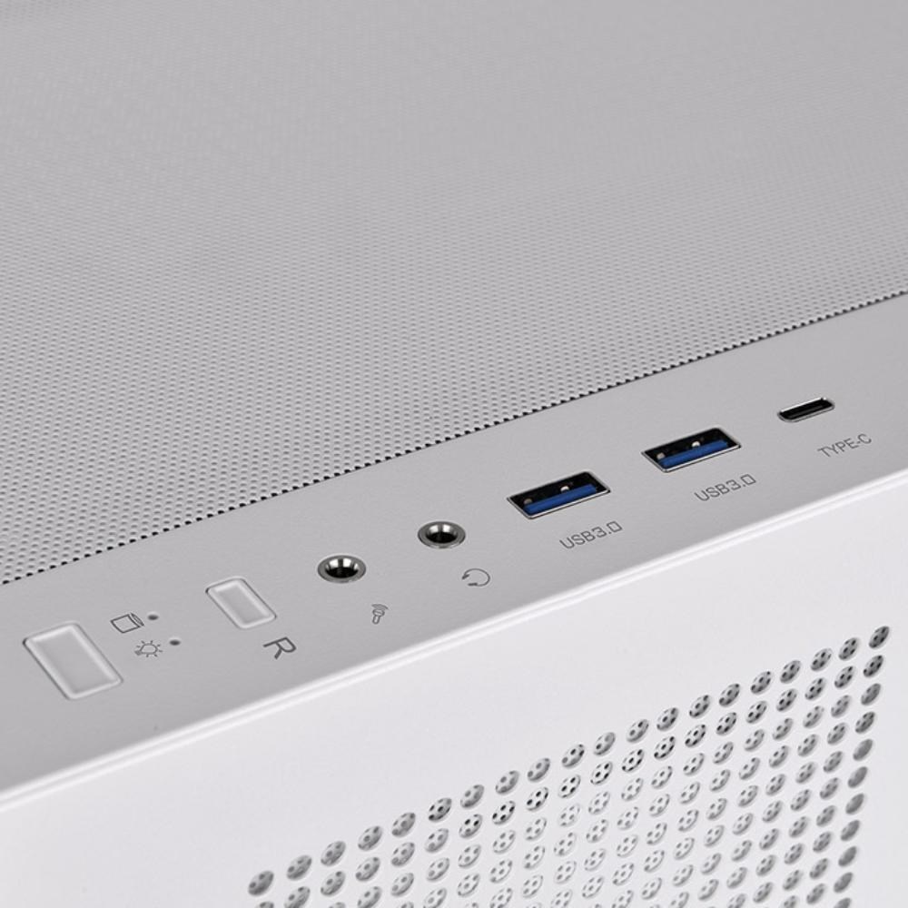 Case:Midi Tower; Case colour:Whitte; Number of slots 3.25" (HDD):2; Number of slots 2.5":1; PC Case equipment:Front Audio Panel, Front USB Panel, Transparent Sidewall