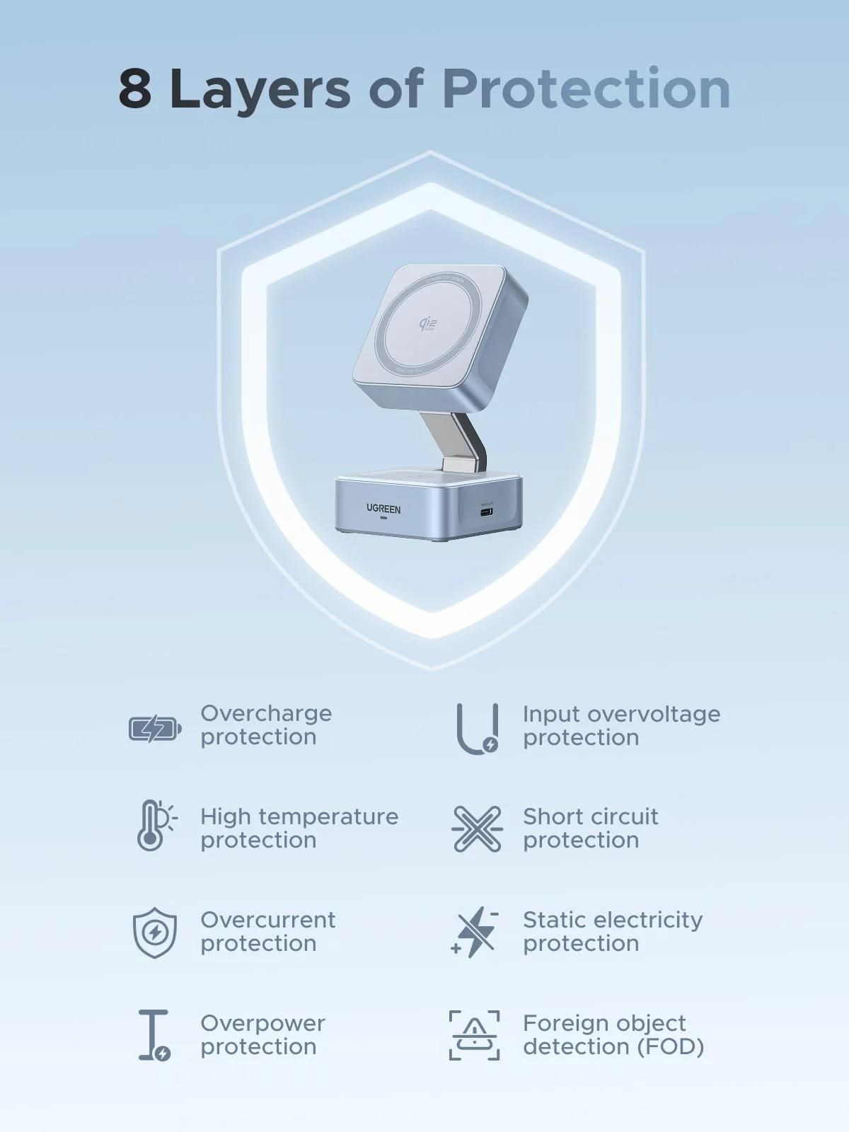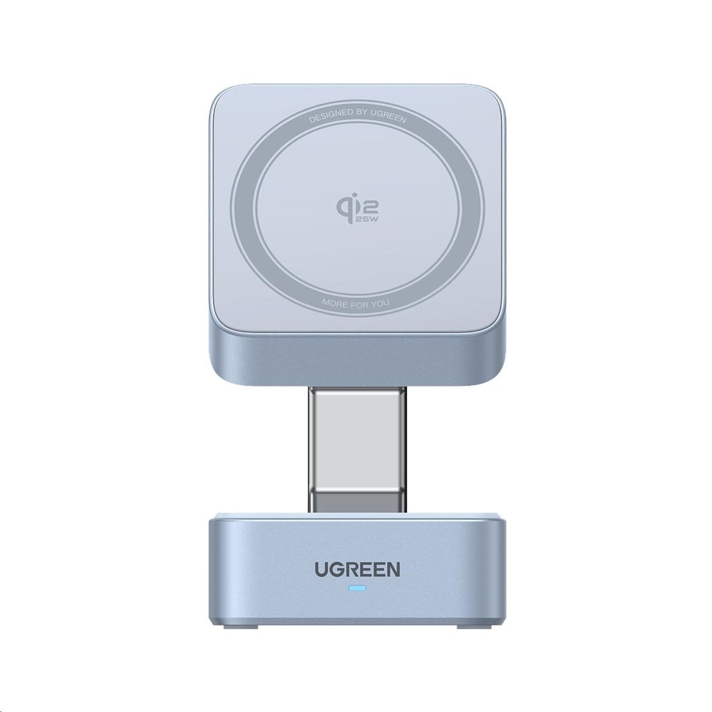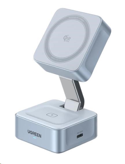 UGREEN magnetická bezdrátová nabíječka 2v1 MagFlow Qi2.2, 25W, MagSafe, stříbrná