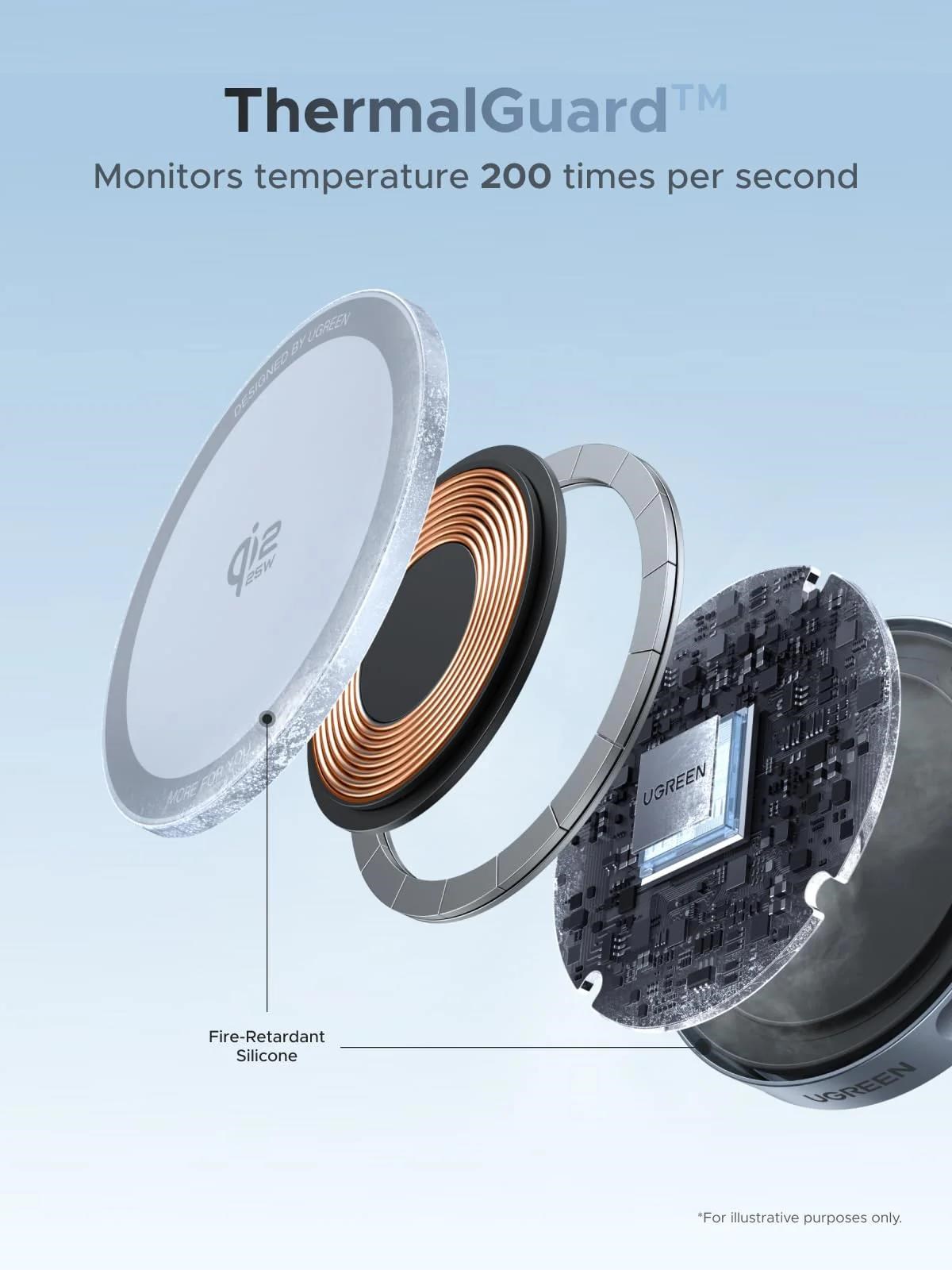 UGREEN magnetická bezdrátová nabíječka MagFlow Qi2.2 25W, MagSafe, stříbrná