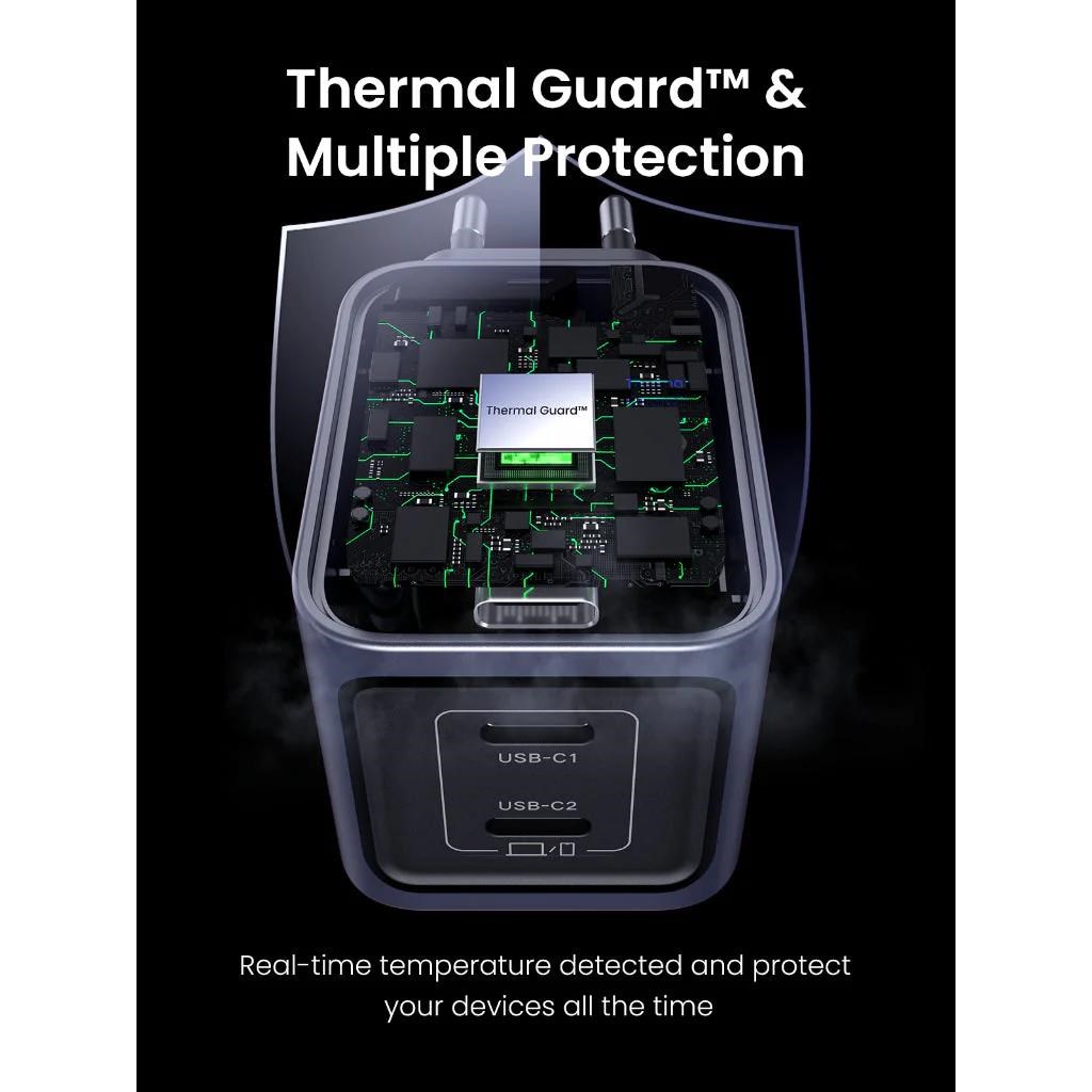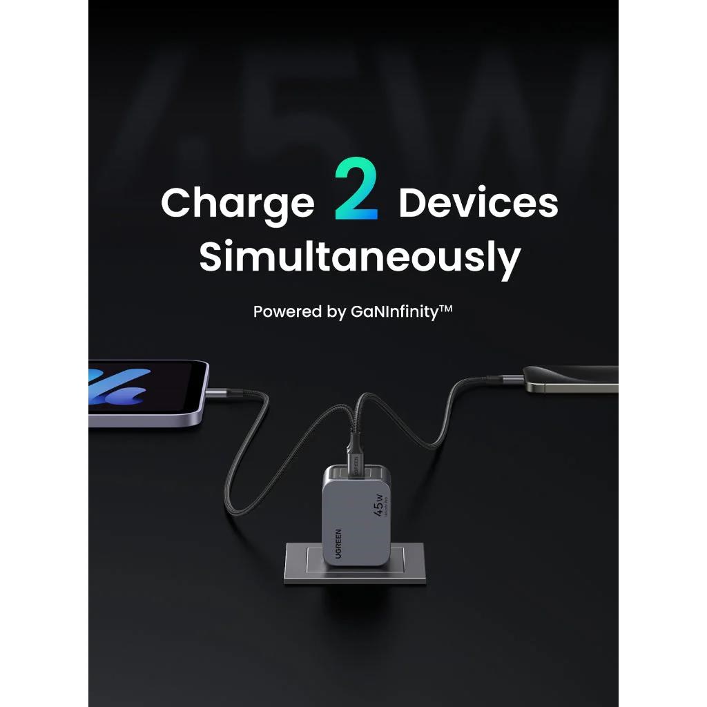 UGREEN síťová rychlonabíječka Nexode Pro 45W 2-Port USB-C, GaN, stříbrná