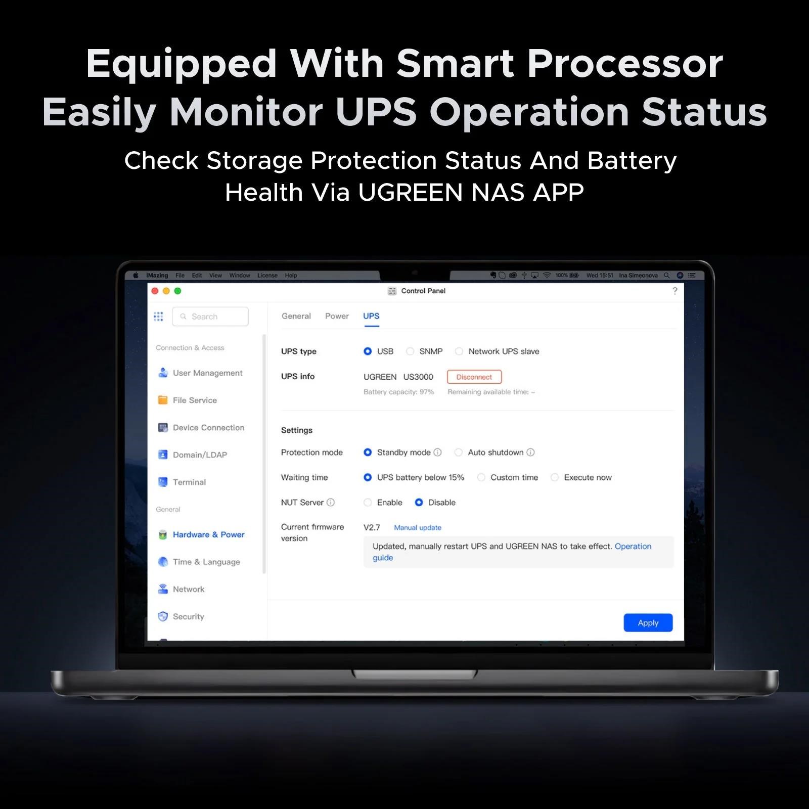UGREEN US3000 UPS zdroj a přepěťová ochrana pro UGREEN NASync (120W, 12000mAh) New arrival Your price: the product is no longer available Price information Your price excl. SNC: - Retail price: - SNC: - AO: - Your price inc. sales tax: - Show all prices Product information Code: 1873021 P/N: 45615 Warranty: 24 Month(s) Manufacturer: UGREEN Representative in the EU: EAN: 6941876246151 Parameters Commodity Logistics information Warranty service Technical parameters Purpose of use: Server Solution: Tower